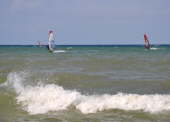 Mehr Fotos vom Sufen und Kiten und von etwas mißglückten Manövern sehen Sie hier.