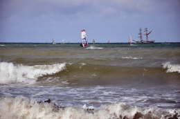 Wenn Sie ca. 3 km nach Altenteil an die Küste radeln, können Sie den Könnern beim surfen und kiten zuschauen.