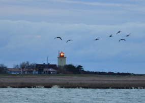 Der Leuchtturm ist seit 1882 in Betrieb und war ursprünglich nur 12 Meter hoch. Er wurde 1902 nachträglich auf 18 erhöht und sichert die westliche Zufahrt zum Fehmarnbelt. Auch dieser Leuchtturm wird automatisch über die Schaltzentrale in Heiligenhafen betrieben.